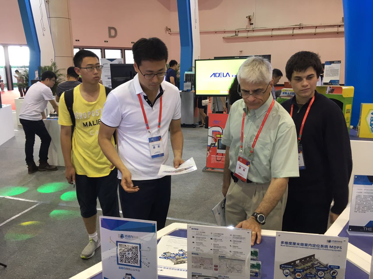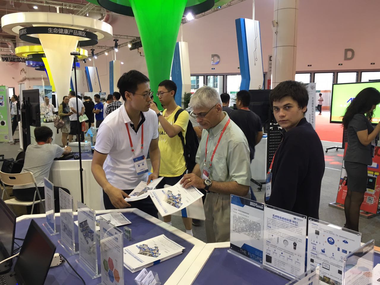 当天下午,来自美国哥伦比亚大学的Steven K. Feiner教授也驻足于云动力科技的展台。经过李漾博士的一番介绍,这位同样是计算机博士的教授对公司的产品十分感兴趣,尤其是厘米级室内定位系统和无线智能感知设备。他同李漾交流了很长时间,双方对物联网领域的发展前景观点十分相似,最后互相留下了联系方式,期待将来能够有机会进行合作。