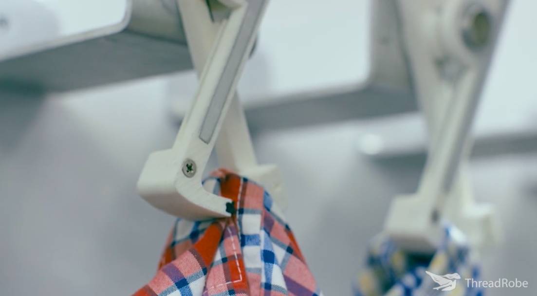 客户需要取出衣物时,可以使用ThreadRobe应用程序。基于应用程序的数据被传到衣橱,然后在所选择的时间释放连接到该挂钩的衣服(已经链接到其RFID号码),并且在释放之前将其以预设的级别进行蒸汽熨烫,提供给用户。因为衣服需要蒸汽熨烫。所以并不是折叠存放的。