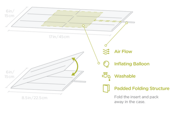 气囊是纤维制成的,只带一个充气管,没有任何电子器件,因而不用担心对身体产生不良影响,且支持水洗和折叠。Nora的尺寸适合任何硬度和形状的枕头,只要在睡前将气囊放入枕头内即可。