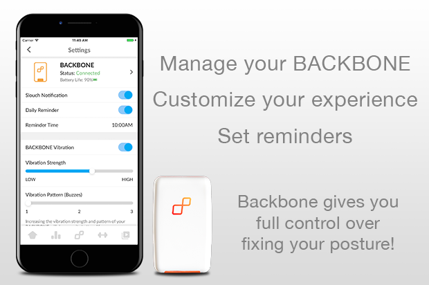 针对现在市面上的姿势矫正产品大多通过外力来辅助,主观意识仍然不强的特点,美国一家公司研发了一款智能产品:Backbone。一方面通过物理方法来纠正,另一方面通过传感器的监测提醒用户主观上注意坐姿,时刻保持挺拔状态。