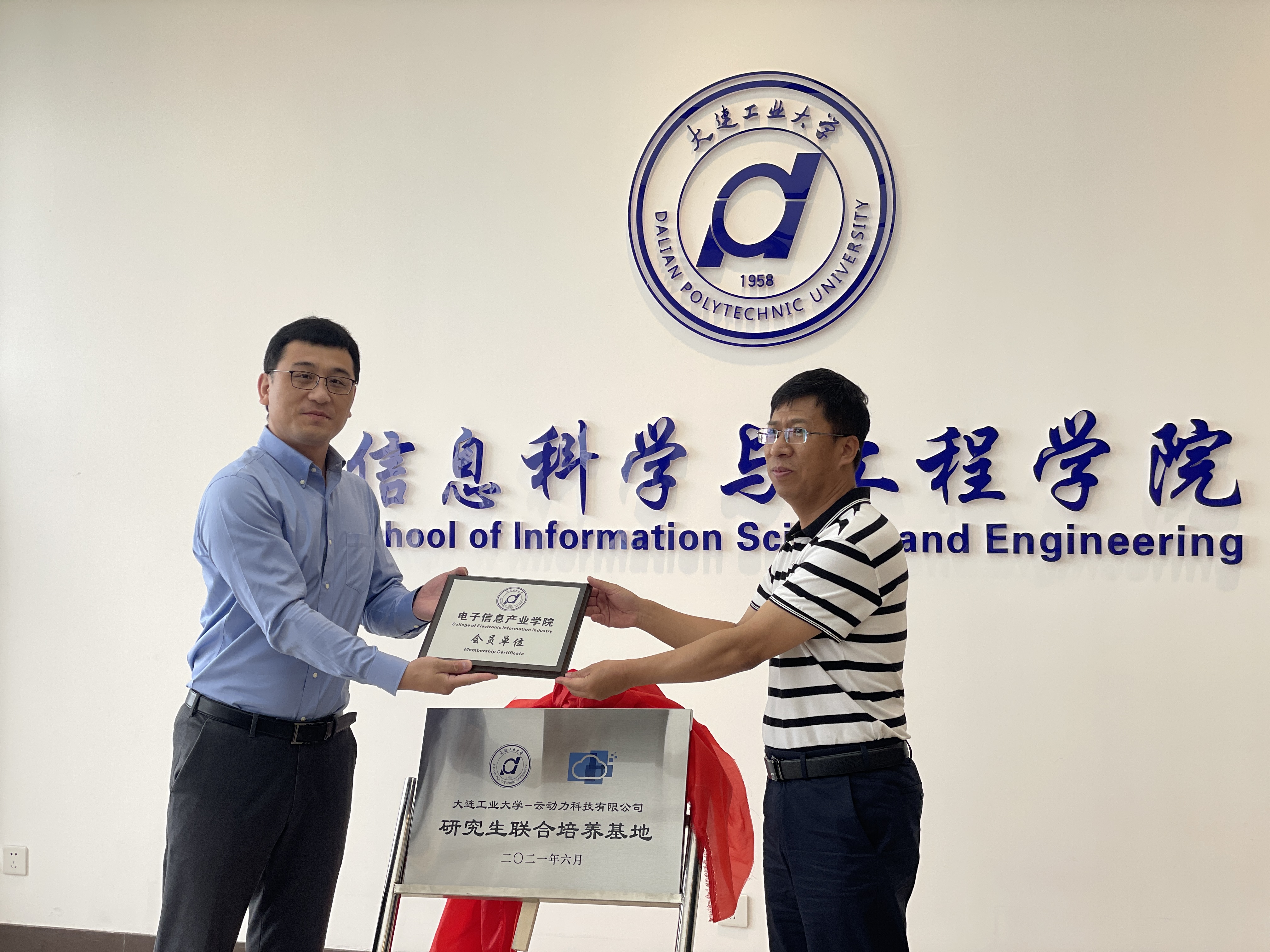 本着“校企联动、资源共享、优势互补、共同发展”的合作原则,7月14日上午,大连云动力科技有限公司与大连工业大学信息科学与工程学院,在综合楼A602会议室隆重举行研究生联合培养基地揭牌仪式和电子信息产业学院授牌仪式。大连云动力科技有限公司总经理李漾、总经理助理孙旭、产品经理李颖、人事经理陈勇、项目经理姜鑫晶,信息科学与工程学院院长赵昕、电子信息学科负责人姚春龙、电子信息产业学院负责人高紫俊及电子信息学科部分硕士生导师出席,仪式由副院长贺晓阳主持。